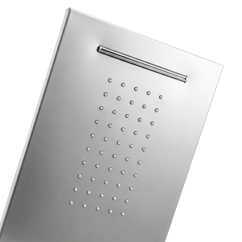 Az ANGEL hidromasszázs zuhanypanel egy lenyűgöző és praktikus megoldás a fürdőszobába, amely eleganciával és kényelemmel tölti meg a zuhanyzás élményét. Ez a zuhanypanel minden szempontból kiváló minőséget és fejlett funkciókat kínál, hogy a fürdőzés valódi élvezetté váljon. A zuhanypanel méretei 155 x 22 x 7 cm, ami lehetővé teszi a könnyű telepítést és a kényelmes használatot. Az ergonomikus dizájn és a méretarányos kialakítás gondoskodik arról, hogy ez a zuhanypanel harmonikusan illeszkedjen a fürdőszobai környezetbe, és helytakarékos megoldást nyújtson.