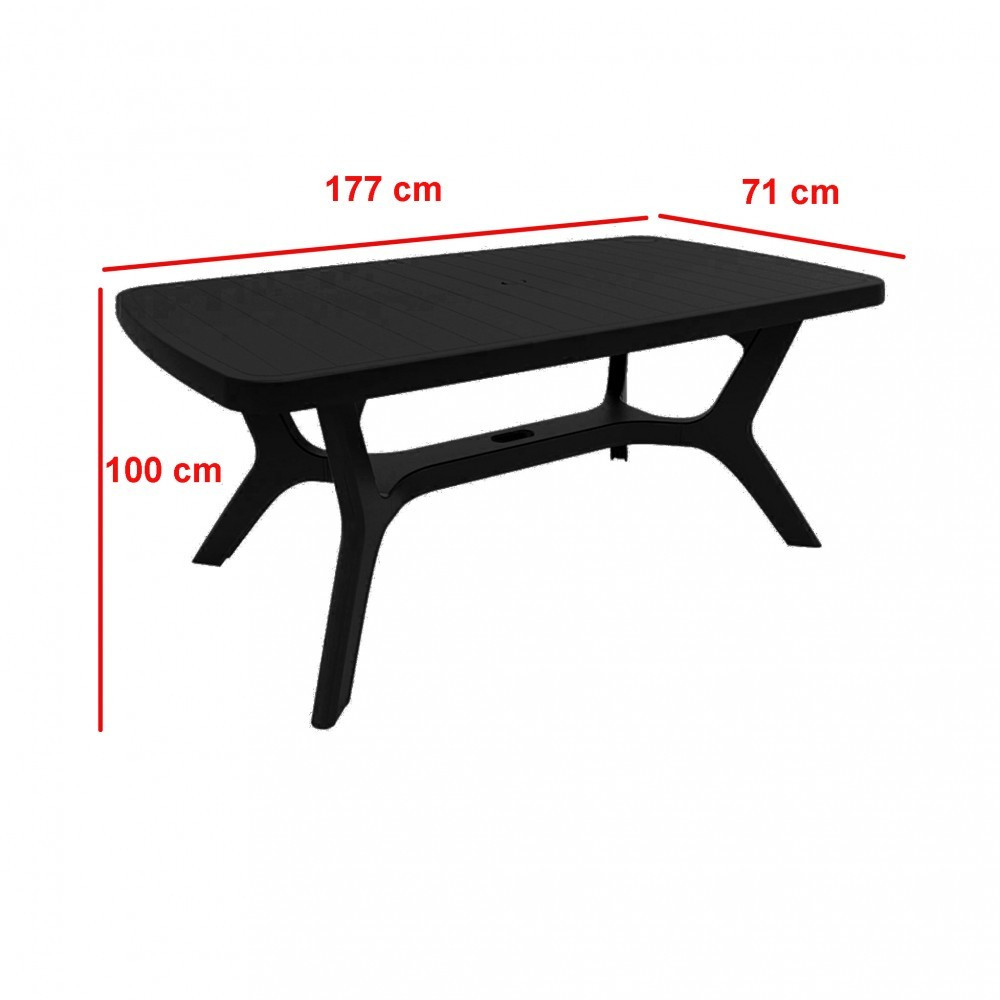 Az erős szerkezet és az elegáns, klasszikus kialakítás az asztal jellegzetes tulajdonságai. Ideális családi összejövetelekhez és baráti találkozókhoz. Az univerzális formatervezés lehetővé teszi az asztal különböző szék modellekkel való használatát. Tartós és ellenáll a környezetei kihatásoknak, valamint az UV sugárzásnak.