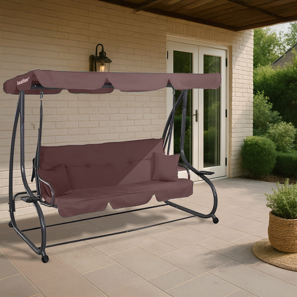 Ez a prémium minőségű, háromszemélyes hintaágy ideális választás minden kertbe vagy teraszra! 200x110x165 cm-es mérete bőséges helyet biztosít akár három ember számára, miközben stabil kialakításának köszönhetően masszív és biztonságos.