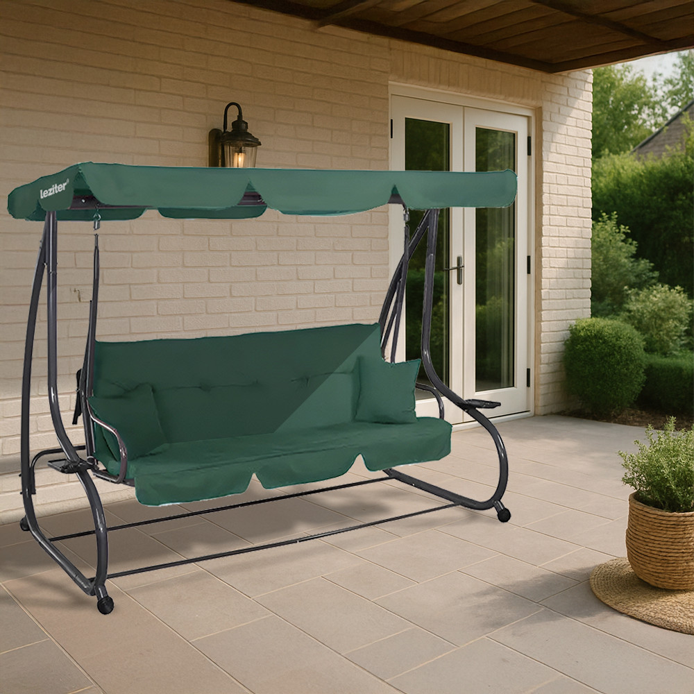 Ez a prémium minőségű, háromszemélyes hintaágy ideális választás minden kertbe vagy teraszra! 200x110x165 cm-es mérete bőséges helyet biztosít akár három ember számára, miközben stabil kialakításának köszönhetően masszív és biztonságos.