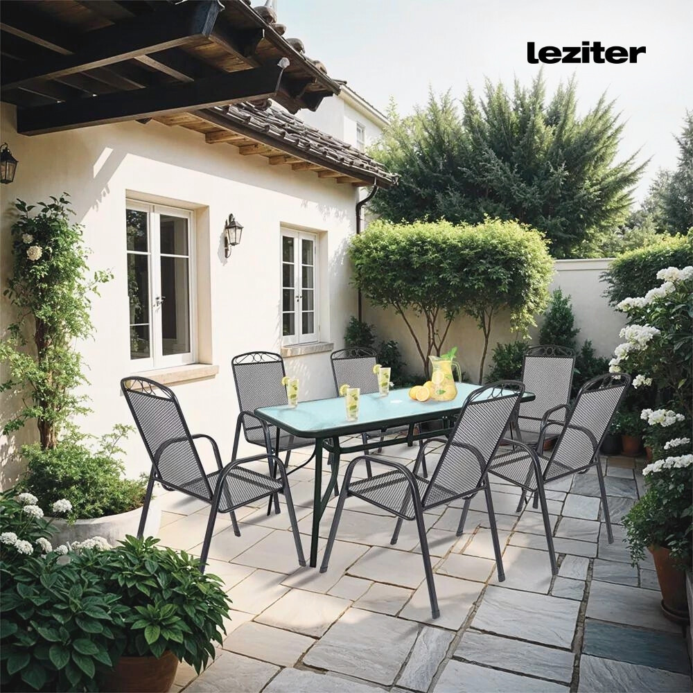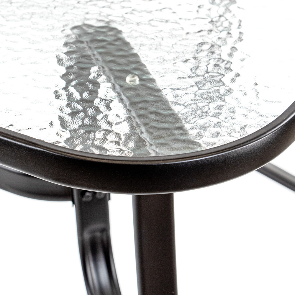 A fémvázas üveg kerti asztalok tartósak és ellenállnak az időjárási viszonyoknak, például esőnek vagy napfénynek. A 42x14 mm-es vastag acél váz porfestett bevonata biztosítja a korrózióállóságot és a hosszú élettartamot.