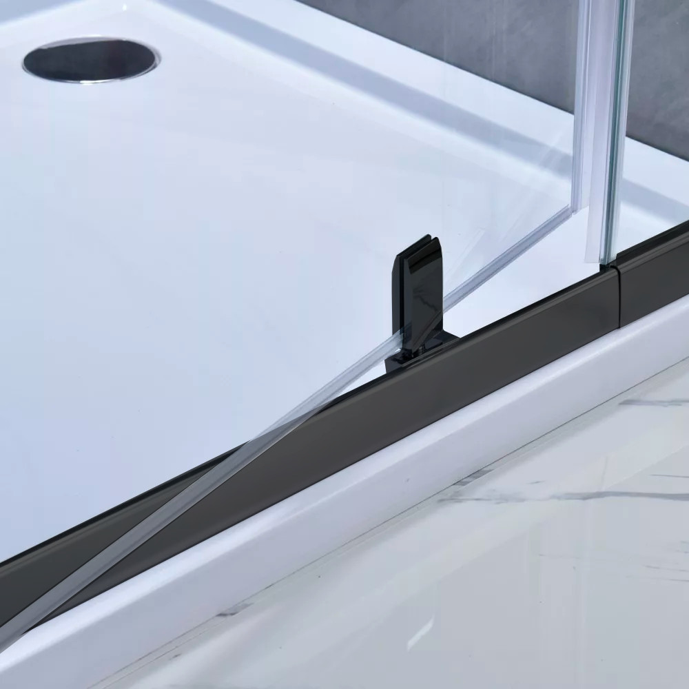 A Flexi állítható zuhanyajtó 86–101 cm között méretre igazítható, így ideális választás lehet egyedi beépítési igényekhez is. A fekete keret és a nagy, átlátszó üvegfelület modern, minimalista stílust képvisel, amely bármilyen fürdőszobába jól illeszkedik. Az 185 cm-es magasság kényelmes használatot és esztétikus arányokat kínál.