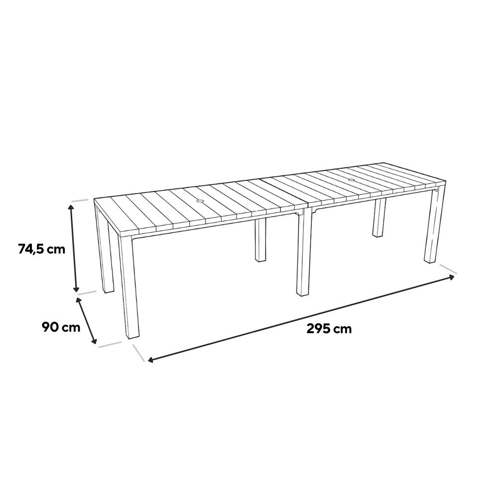 - Rövid oldalakkal összekapcsolva: 295 x 90 x 74,5 cm