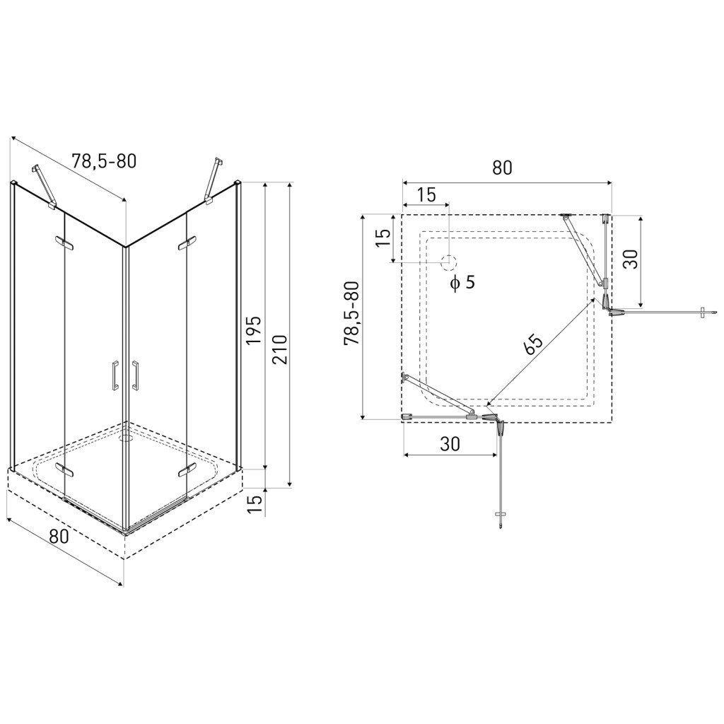 Flow Black 80 szögletes zuhanykabin zuhanytálcával