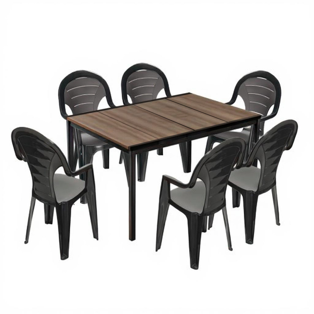 A dió színű asztallap természetes hatást kelt, ami remekül harmonizál a grafit székek letisztult formavilágával. A szett elegáns, mégis praktikus – és ami a legjobb: hosszú évekig gondtalanul használhatod.