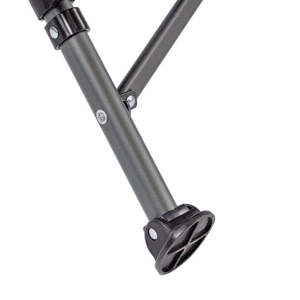 • Stabilitás minden talajon – a porszórt acélcső váz és a csúszásgátló lábvégek együtt masszív támaszt nyújtanak a stég mellett, parton vagy akár kavicsos terepen.