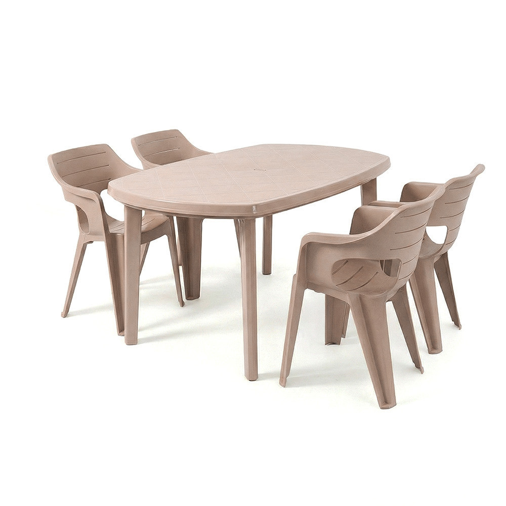 A Lino 4+1 kerti bútor garnitúra szett cappuccino színben remek választás kisebb kültéri terekhez, ha kényelmes és könnyen karbantartható étkezőszettet keresel.
