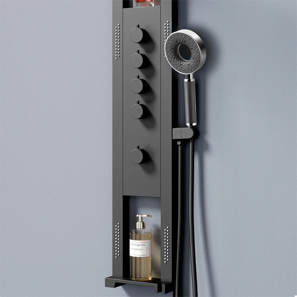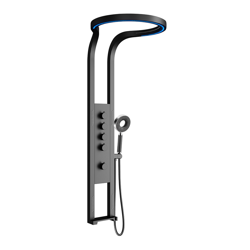 A Luxory zuhanypanel fekete színben és minimalista formavilággal tökéletesen illik a modern fürdőszobai enteriőrökbe.