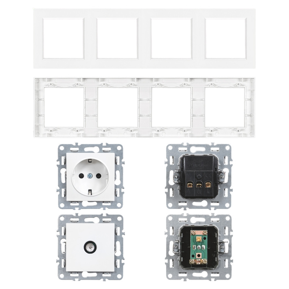 Rendeld meg most a Nova IV három földelt csatlakozóaljzatot TV csatlakozóval, és egészítsd ki a rendszered stílusban és funkcióban is illeszkedő Nova keretekkel, USB- és UTP aljzatokkal, kapcsolókkal – minden, amire egy megbízható és letisztult beltéri szerelvényrendszerhez szükség van.