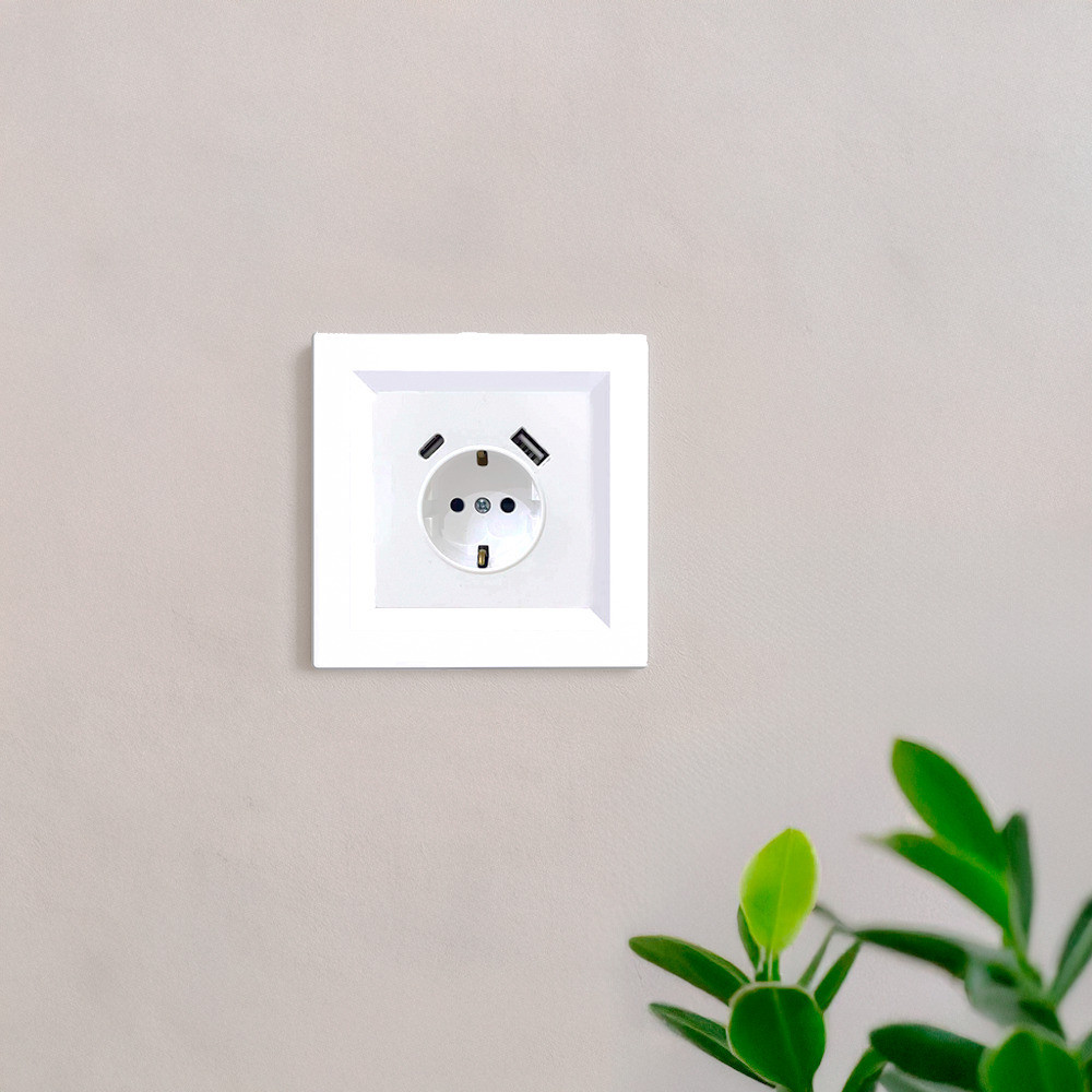 A Nova földelt csatlakozóaljzat USB csatlakozóval egy innovatív megoldás, amely egyesíti a hagyományos elektromos dugalj funkcióját és a praktikus USB töltési lehetőséget. Beépített USB-A és USB-C portjai lehetővé teszik a kisebb fogyasztású eszközök, például okostelefon, vezeték nélküli fülhallgató, okosóra töltését – külön hálózati adapter nélkül.