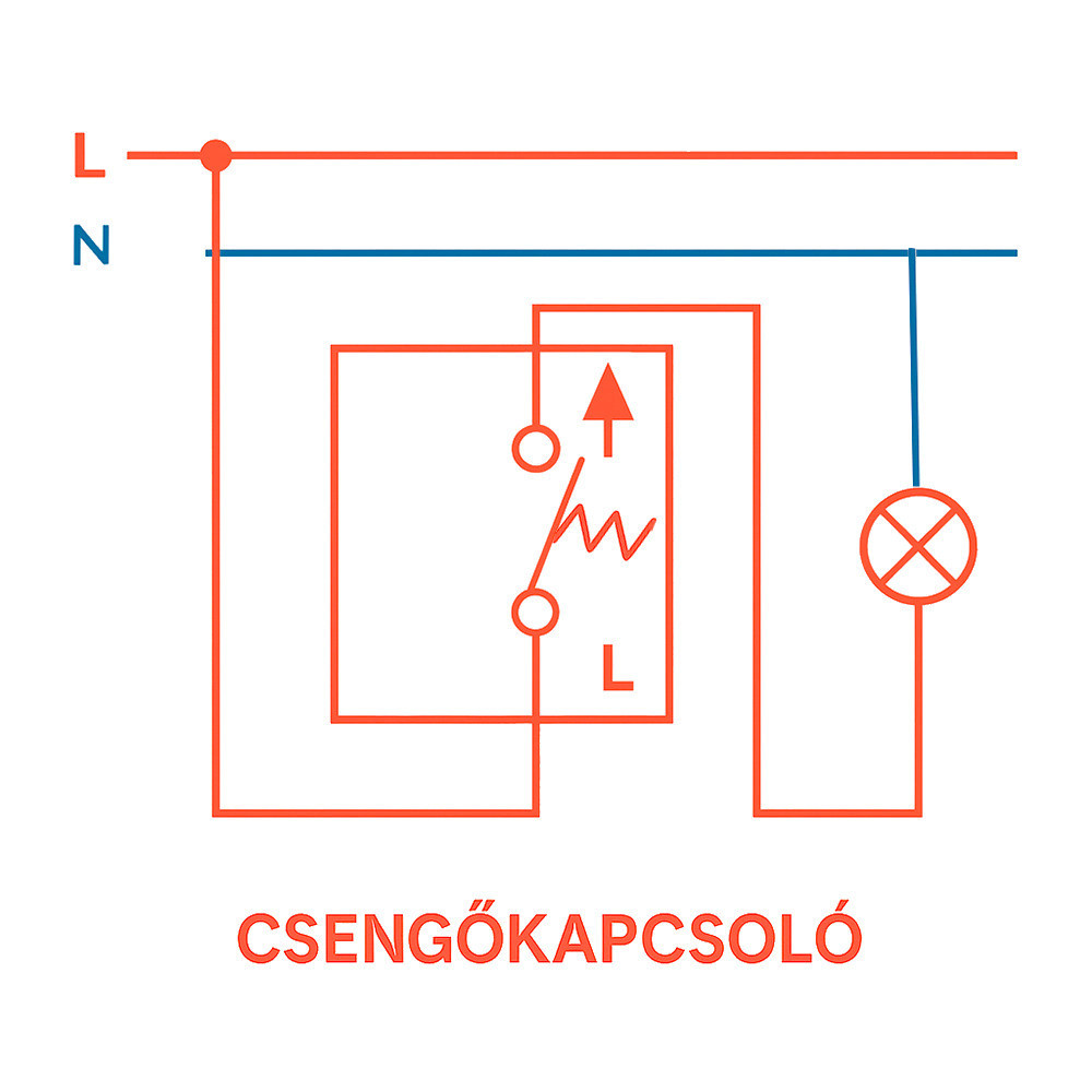 • Típus: Csengőkapcsoló (rugós visszanyitású, impulzuskapcsoló)