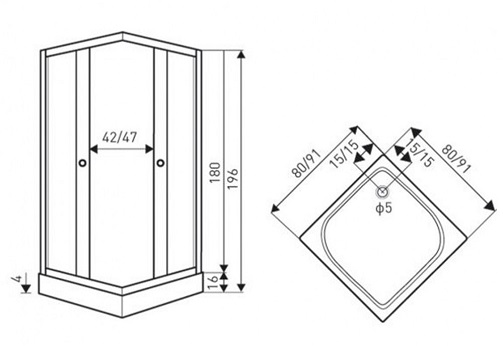 Olga SQ 80x80 cm szögletes zuhanykabin zuhanytálcával