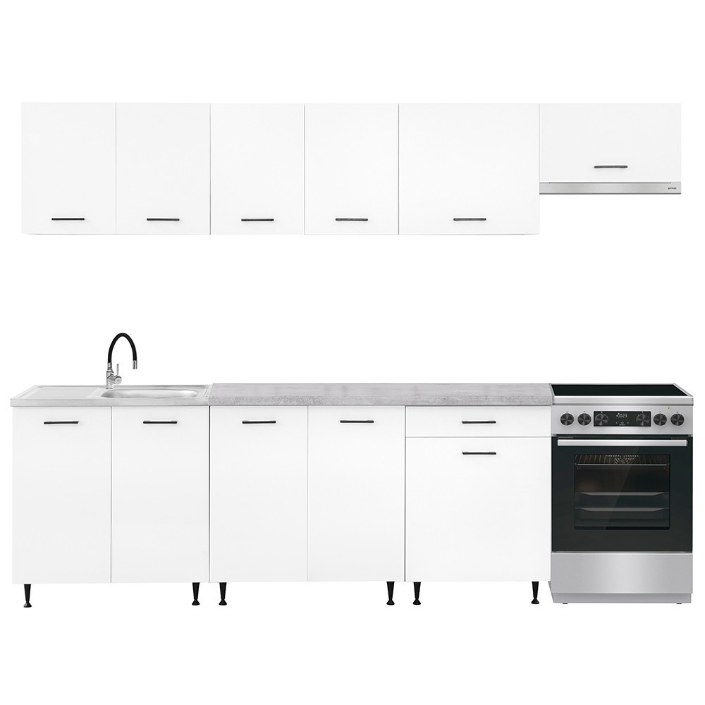 A Leziter Primo 280 konyhabútor fehér korpusszal és Chromix tölgy munkalappal könnyen illeszkedik a modern otthonok világos, letisztult enteriőrjébe. Harmonikus színvilága friss, tágas hatást kelt, így ideális választás közepes vagy nagyobb alapterületű konyhákhoz. Átgondolt elemkiosztása praktikus, jól szervezett mindennapi használatot kínál, miközben egységes, rendezett összképet biztosít.