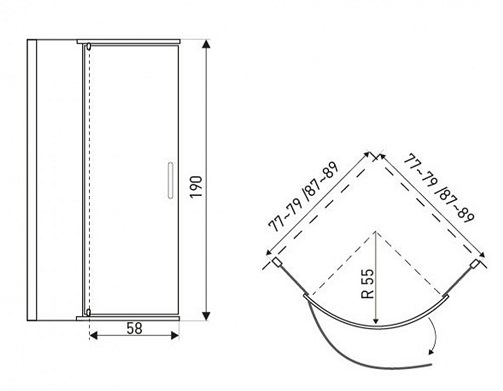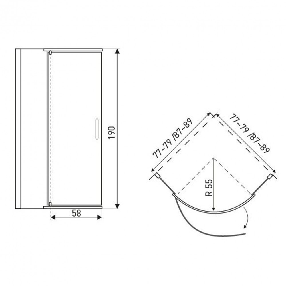 A zuhanykabin 6 mm-es biztonsági üveggel van ellátva. A mérete 79x79x190 cm. Univerzális jobb vagy bal oldali ajtó beszerelési lehetőség. A zuhanykabin üvege vízlepergető védőbevonattal van ellátva. Egyszárnyú nyílóajtókkal rendelkezik.