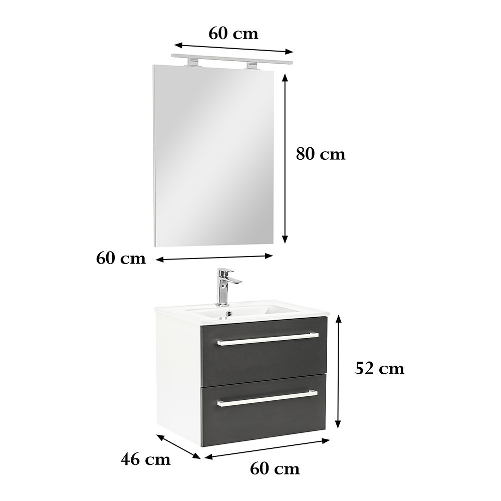 Vario Clam 60 komplett fürdőszoba bútor fehér-antracit - stílusos és modern fürdőszobabútor
