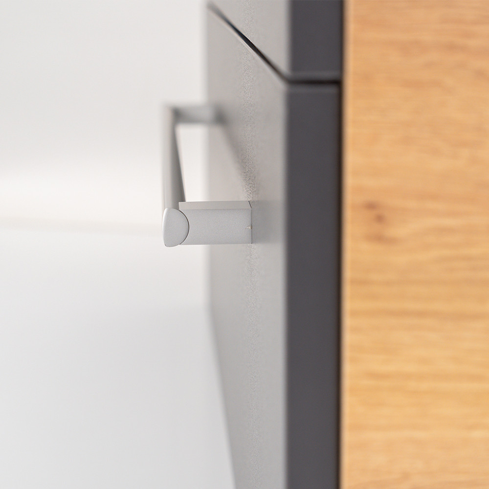 - Kifinomult színvilág: A tölgy korpusz és az antracit front kombinációja elegáns és időtálló megjelenést kölcsönöz a bútornak.