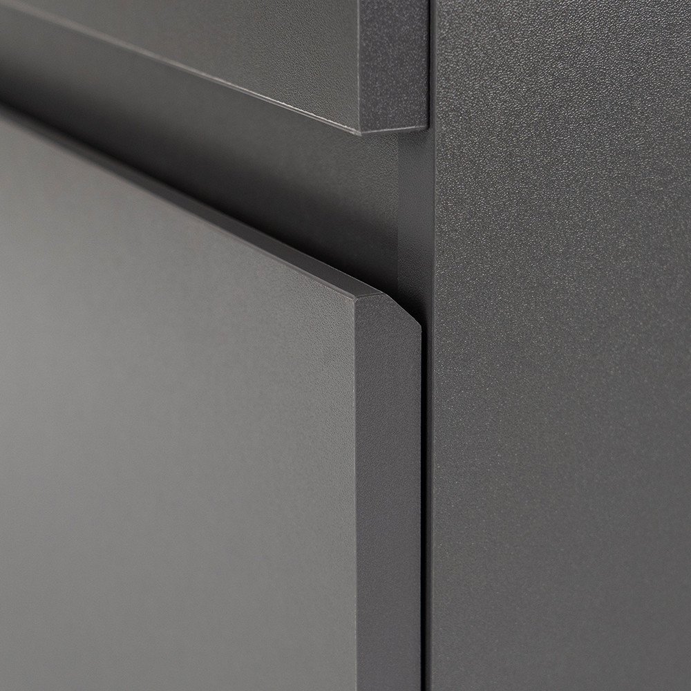 Az antracit korpusz és a antracit front kombinációja elegáns és időtálló megjelenést kölcsönöz a bútornak.