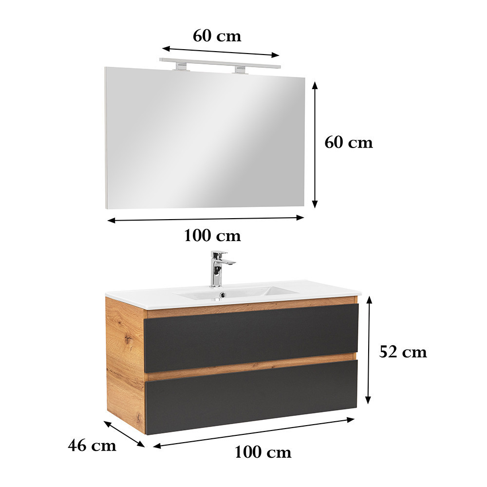 Vario Forte 100 komplett fürdőszoba bútor tölgy-antracit - stílusos és modern fürdőszobabútor