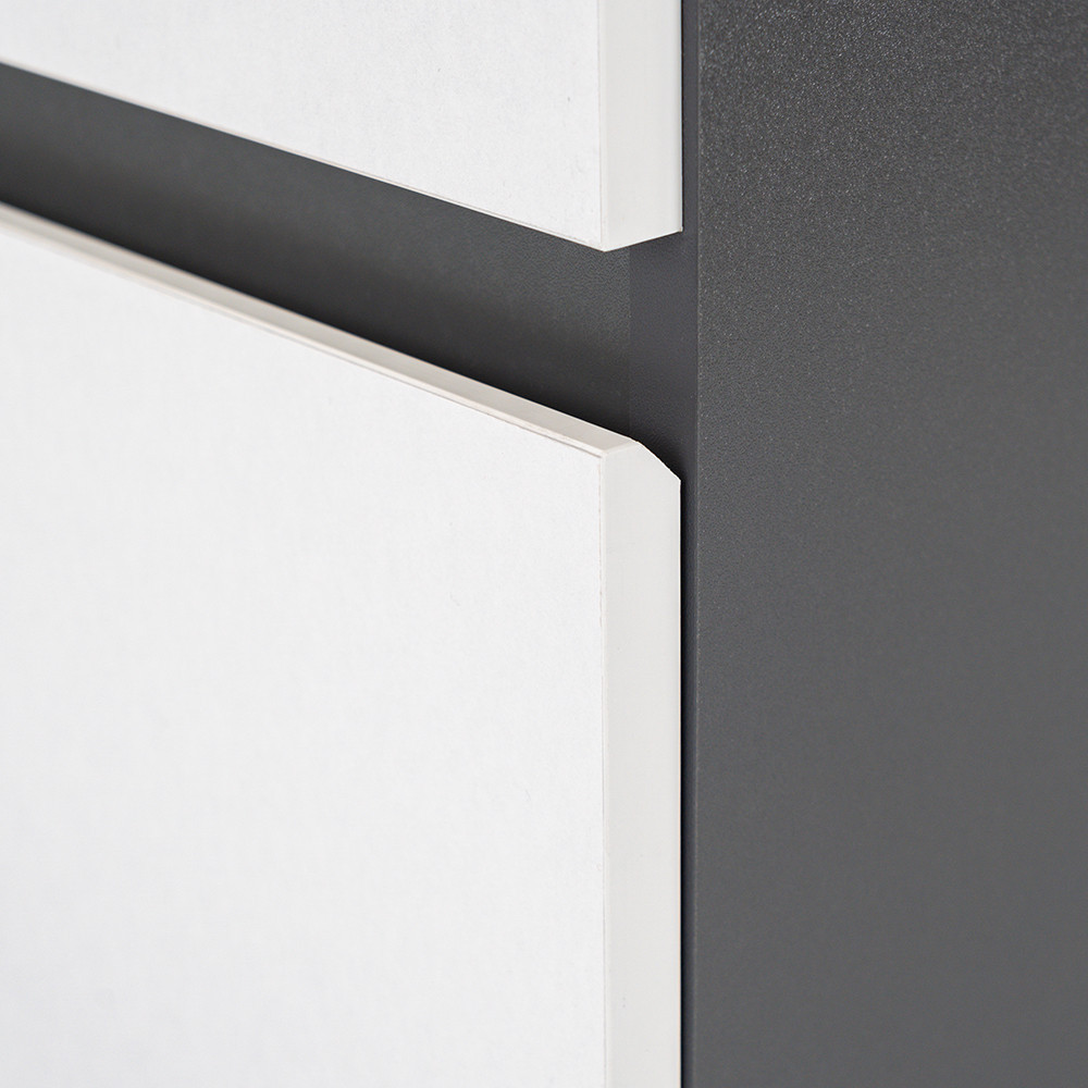 • Kifinomult színvilág: Az antracit korpusz és az fehér front kombinációja elegáns és időtálló megjelenést kölcsönöz a bútornak.