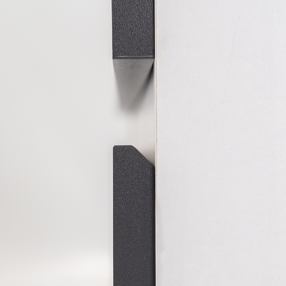Az fehér színű korpusz és a antracit front kombinációja elegáns és időtálló megjelenést kölcsönöz a bútornak.