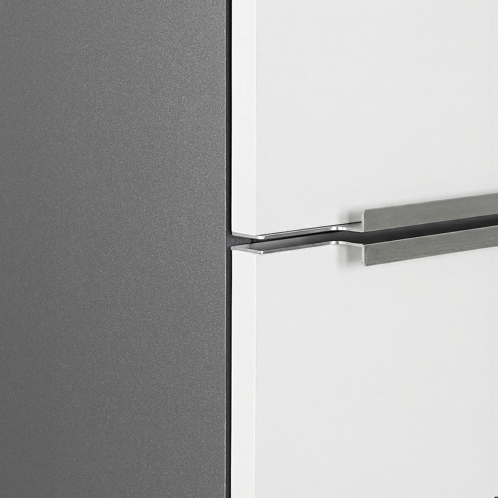 A Vario Trim 35 függesztett oldal szekrény ideális kiegészítője minden modern fürdőszobának. Remek választás, ha extra tárolóhelyre van szükség kompakt méretben a dizájnt és a minőséget is szem előtt tartva. Az antracit korpusz és fehér front időtlen, letisztult megjelenést biztosít, amely harmonikusan illeszkedik a Vario Trim család további elemeihez.