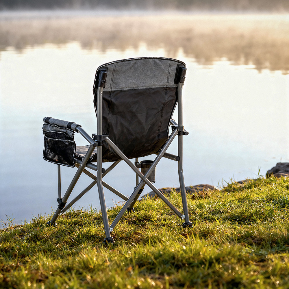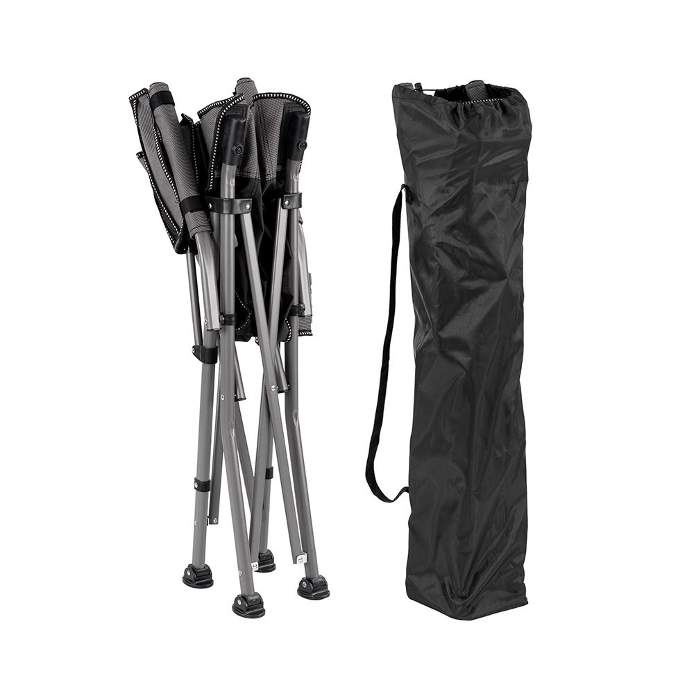 • Stabilitás minden talajon – a porszórt acélcső váz és a csúszásgátló lábvégek együtt masszív támaszt nyújtanak a stég mellett, parton vagy akár kavicsos terepen.