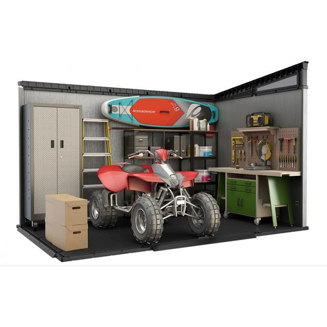 A kivételesen tágas ARTISAN 11 x 7 szerszámos ház tökéletes megoldás mindazok számára, akik stílusos és funkcionális szerszámos kerti házat keresnek. A nagy belső tér tovább alakítható polcok, kampók és akasztók rögzítésével. Alkalmas különböző nagy méretű tartozékok és készülékek tárolására is. A DUOTECH kettős falpanelek a kedvezőtlen légköri feltételekkel szemben magas ellenálló képességgel rendelkeznek. Az acéllal speciálisan megerősített tető 200 kg/m2-es hóterhelést bír. Nagy előnye az, hogy a ház tetszőleges színre lefesthető, így megjelenését mindenki a saját ízlésének megfelelően alakíthatja.