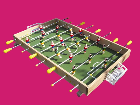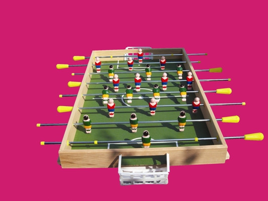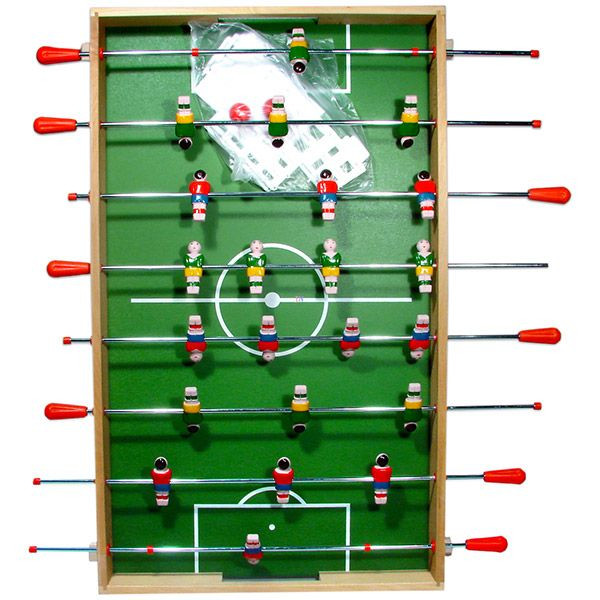 E termékünkkel ismét visszahoztuk az igazi, valódi csocsót! A kiváló minőség mellett a csocsó játékosai ismét gumiból készültek, a játékosok öltözetét gondos kezek munkája színezte! A csocsó figurái anyaguk miatt törhetetlenek! Az asztali foci szerkezete fa, és nem a manapság megszokott faforgács lap! A játéktér kerete, ha úgy tetszik palánkja a rövid és hosszú oldal össze van eresztve, ragasztva! A kapuk szintén lágy műanyagból készültek, ezért igen jól állják a gólokat, nem törnek! Esetleges hiba esetén könnyen cserélhetőek, könnyen pótolhatók! A fogantyúk is kézre álló lágy műanyagból készültek, kényelmes játékot garantálnak! A csocsó azaz asztali foci alján a fotókon is jól látható gumi talpak vannak felerősítve, hogy kevésbé csússzon az asztalon, illetve ne karcolja azt! Igazán minőségi termék, ezért előszeretettel ajánljuk!! A játékosok felállása 1-3-4-3 alakzat! A játékot 2 ill. 4 fő játszhatja egyidejűleg, de a játékban bajnokságok szervezésével több ember is részt vehet! Ajánlott a 6 ill. 12 gólig tartó meccsek szervezése! Gyermekeknek felnőtteknek egyaránt ajánlott játék 100 éves korig! Igazi készségfejlesztő játék; gyorsaság, reflex, koncentráció!! A termék lábazattal együtt is megvásárolható áruházunkban, másik cikkszámon! A képek jobb megtekintése érdekében kérjük kattintson az ábrákra, majd a felvillanó képek jobb, ill. bal felső szélén felvillanó nyilakkal előre-hátra léptetheti a csocsó fotóit!
