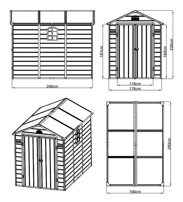 Ave E 6x9 műanyag kültéri kerti ház sötét szürke - fehér