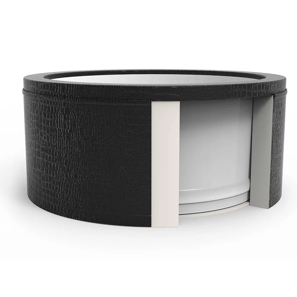 Nagy méretű dézsa jakuzzi 4-6 főre, elegáns fekete bőrhatású borítással.