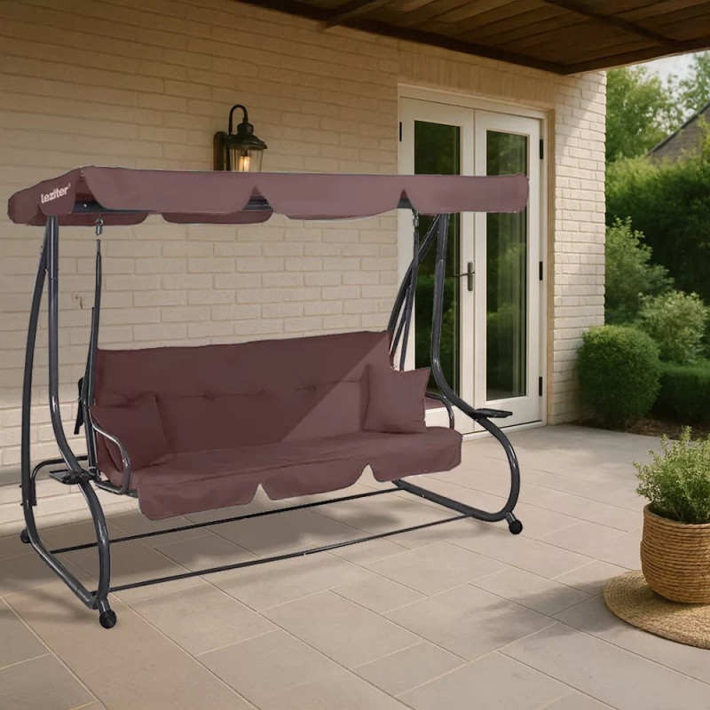 Ez a prémium minőségű, háromszemélyes hintaágy ideális választás minden kertbe vagy teraszra! 200 x 110 x 165 cm-es mérete bőséges helyet biztosít akár három ember számára, miközben stabil kialakításának köszönhetően masszív és biztonságos.