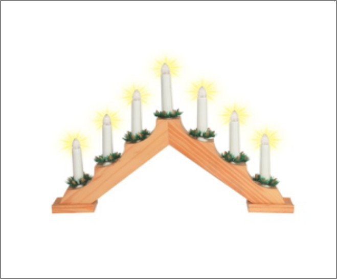 Beltéri 7 gyertyás ablakdísz, fa színű, meleg fehér színben