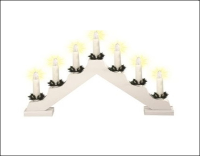 Beltéri 7 gyertyás fehér ablakdísz, meleg fehér színben