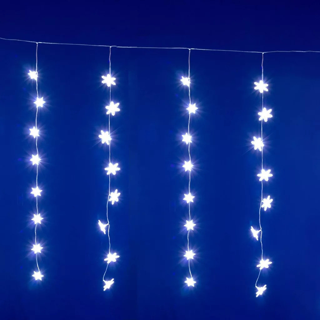 Beltéri ledes hópehely fényfüggöny, hideg fehér