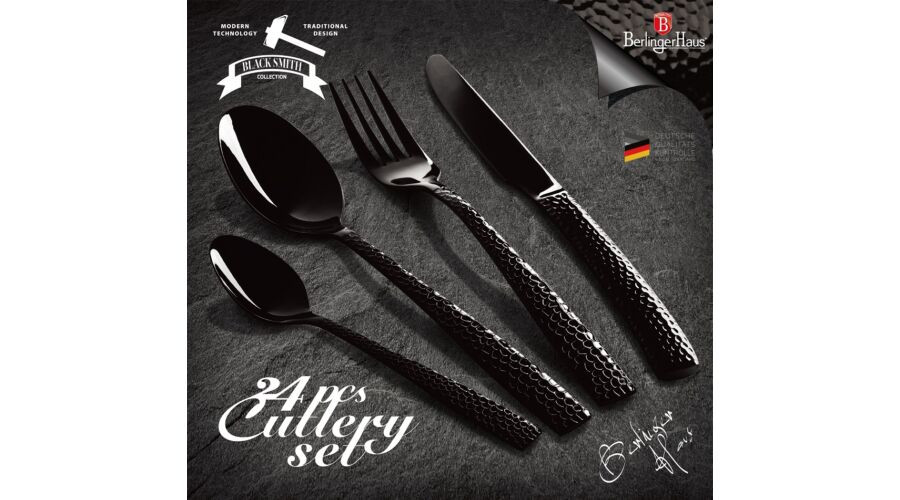 Berlinger Haus 6 személyes rozsdamentes acél evőeszköz készlet, különleges mintával fekete színben