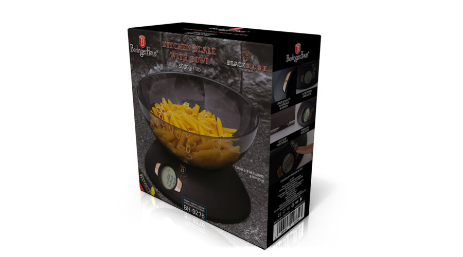 Berlinger Haus Back Rose Collection digitális konyhai mérleg tállal, fekete/rosegold