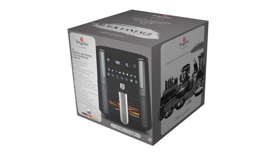 Berlinger Haus Black Rose Collection Air Fryer forró levegős sütő átlátszó ablakkal, 5L