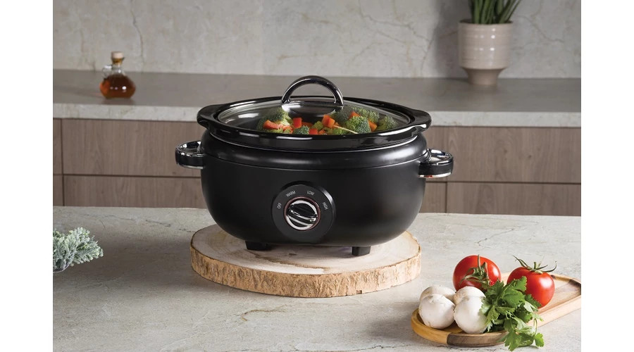 A Berlinger Haus Black Rose Collection digitális Slow Cooker kiváló minőségű kerámiából készült, levehető külső vasházzal, hőálló üveg fedővel.