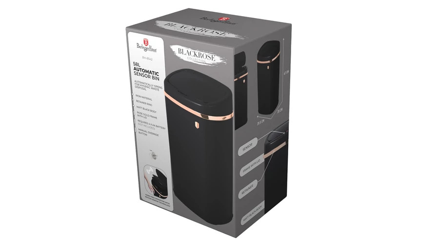 Berlinger Haus Black Rose Collection szenzor érzékelős szemetes, 58 L