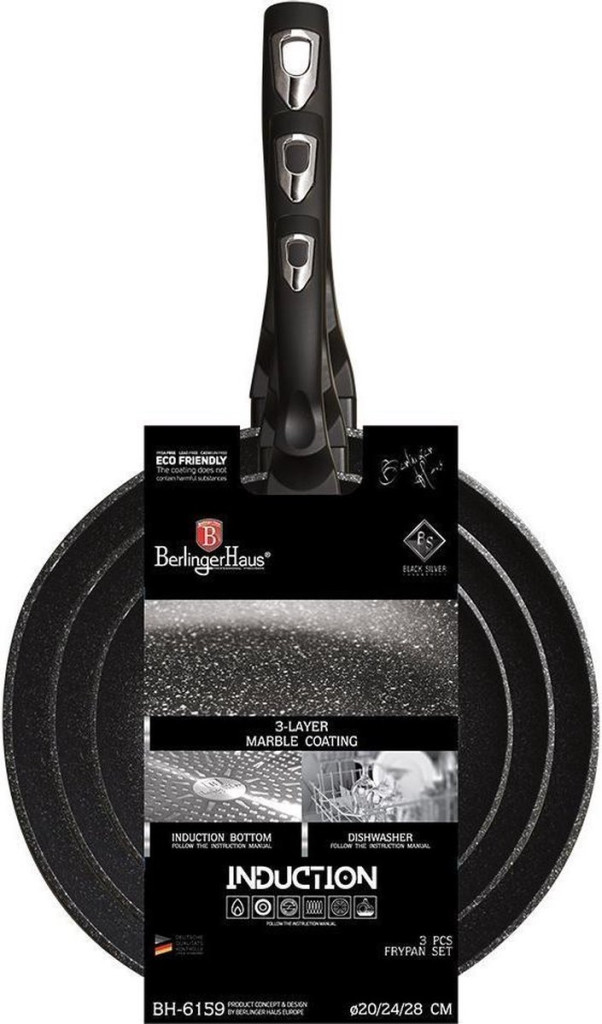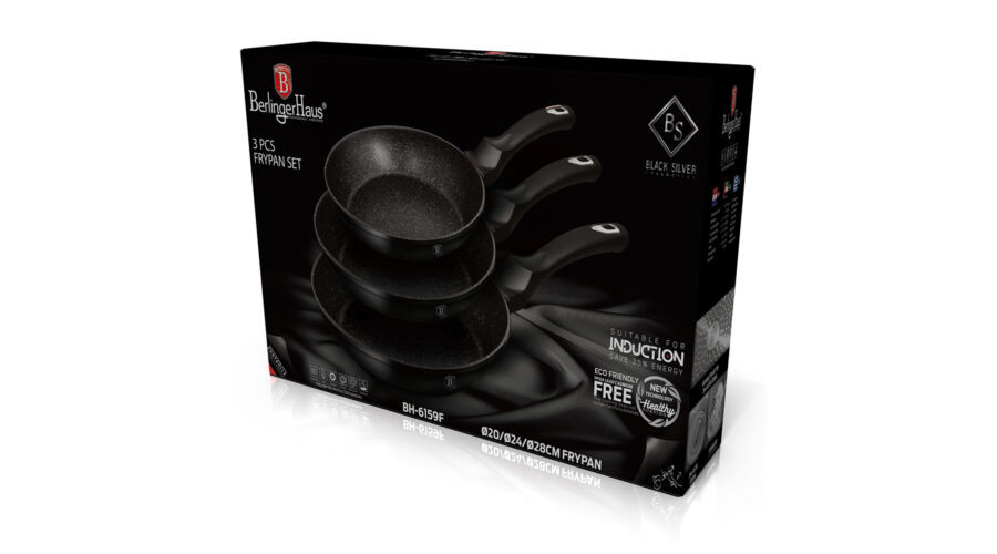 Berlinger Haus Black Silver Collection 3 részes serpenyőkészlet márvány bevonattal