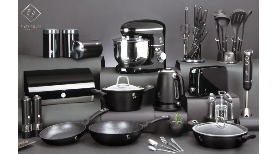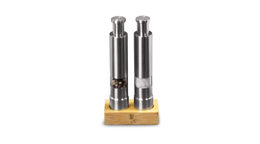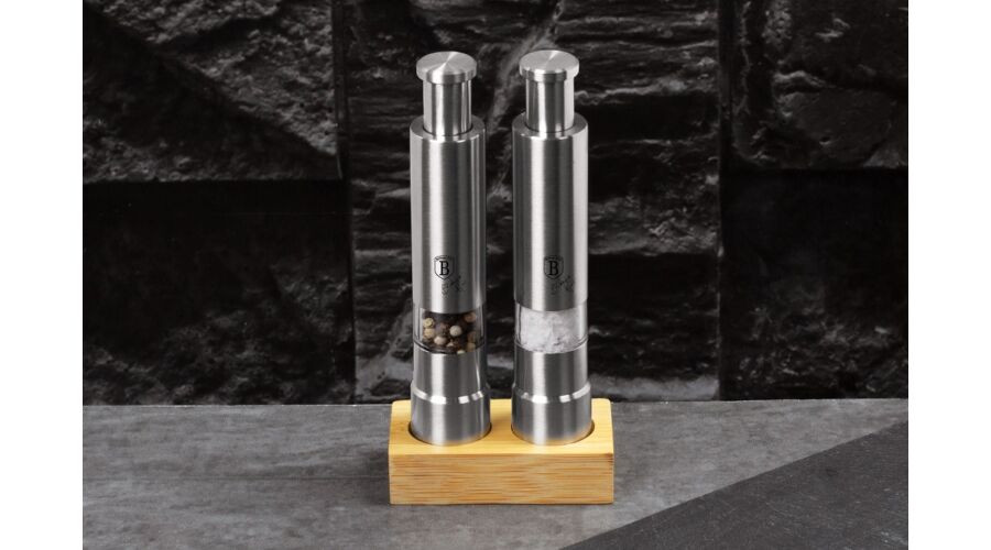 Berlinger Haus Black Silver Collection rozsdamentes acél fűszermalom készlet bambusz állvánnyal
