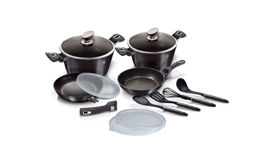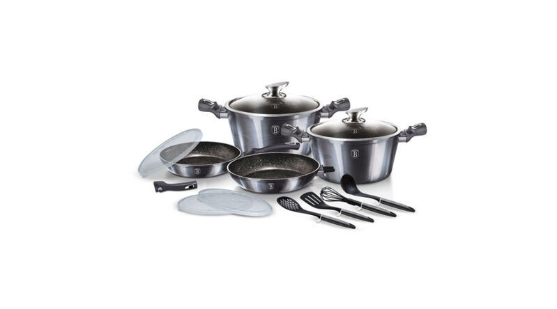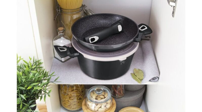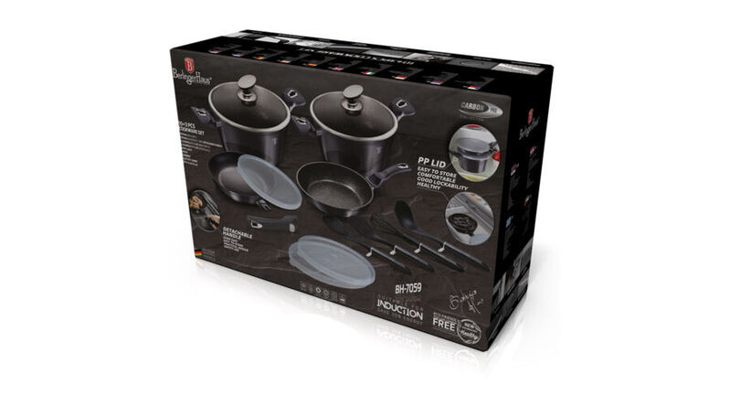A Berlinger Haus Carbon Pro Collection kovácsolt alumíniumból készült edények három réteg márvány bevonata és a turbó indukciós talp lehetővé teszi, hogy ételei energiatakarékosan és gyorsabban elkészüljenek.