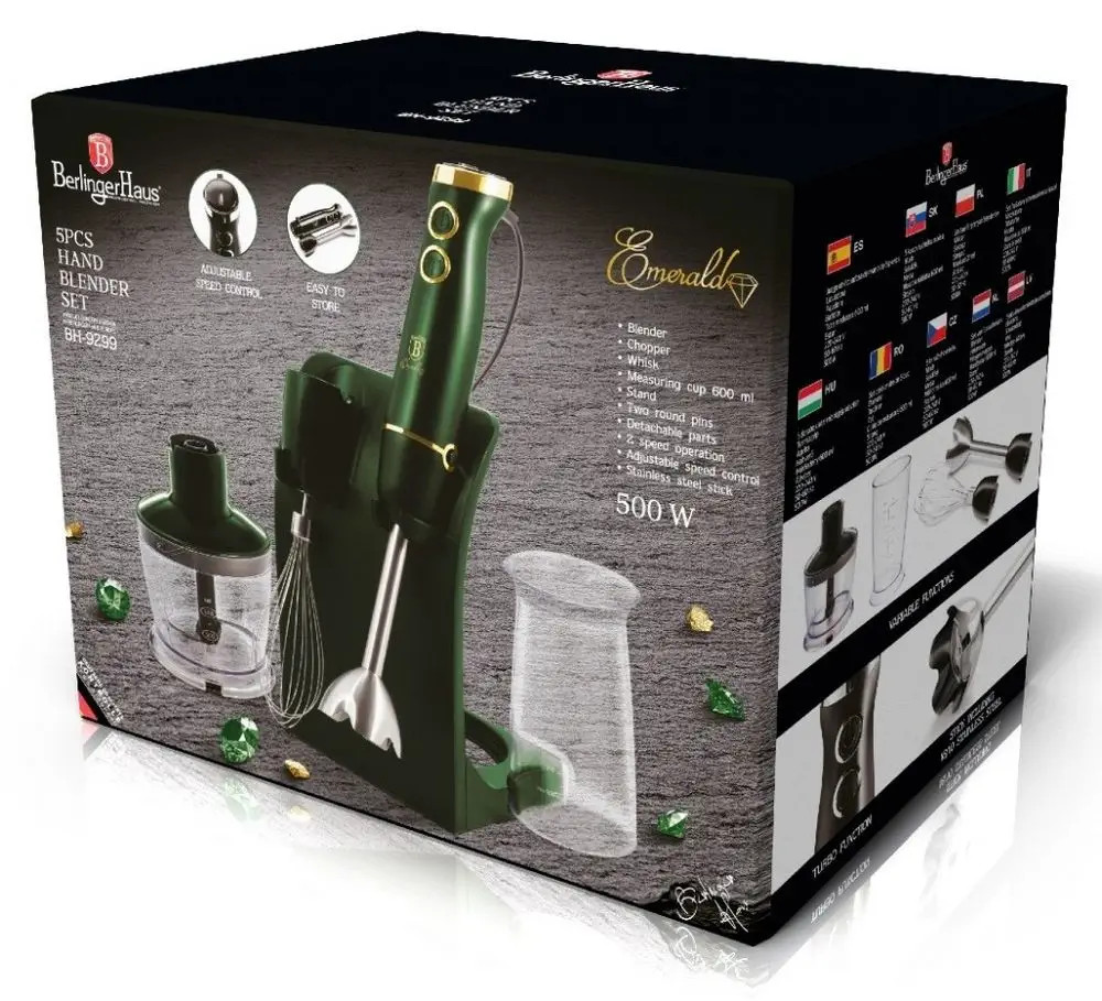 Berlinger Haus Emerald Collection 5 részes botmixer készlet állvánnyal, 500 W