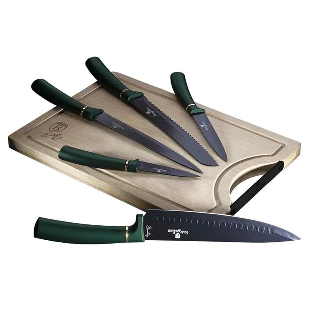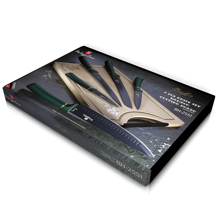 Berlinger Haus Emerald Line 6 részes késkészlet bambusz vágódeszkával