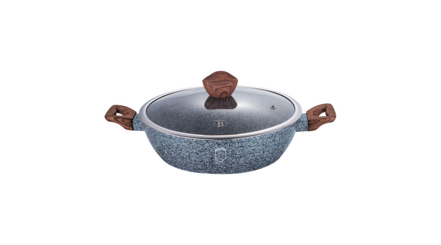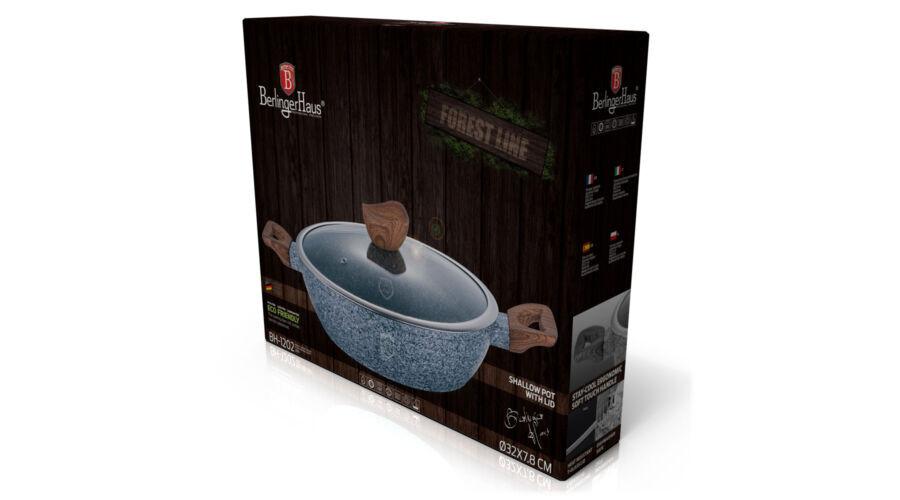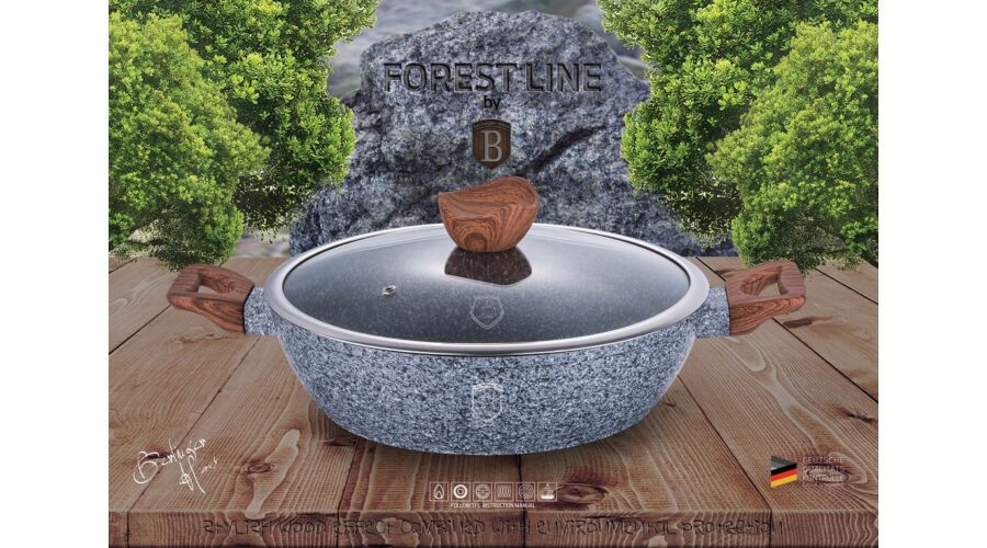Berlinger Haus Forest Line lábas kő hatású márvány bevonattal, fa mintázatú fogókkal, fedővel, 32 cm