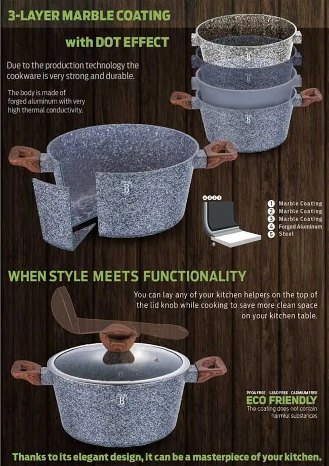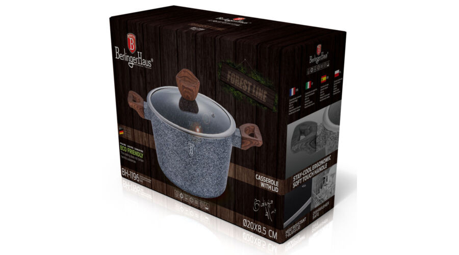 Berlinger Haus Forest Line magas lábas kő hatású márvány bevonattal, fedővel, 20 cm