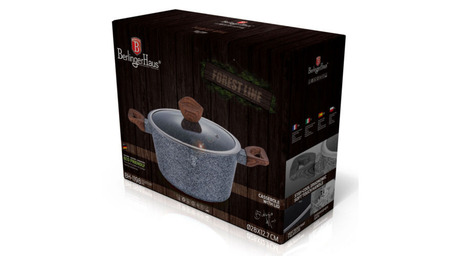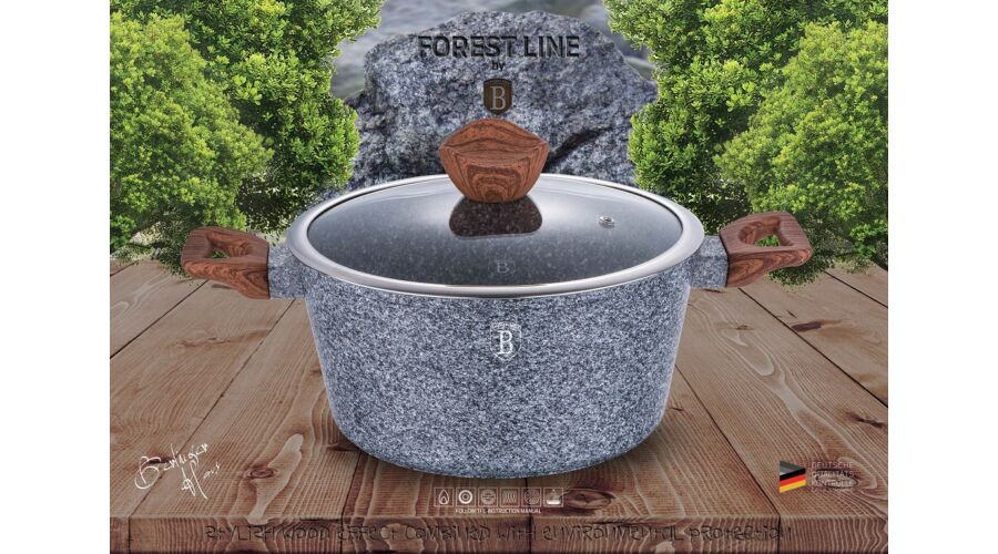 Berlinger Haus Forest Line magas lábas kő hatású márvány bevonattal, fedővel, 28 cm