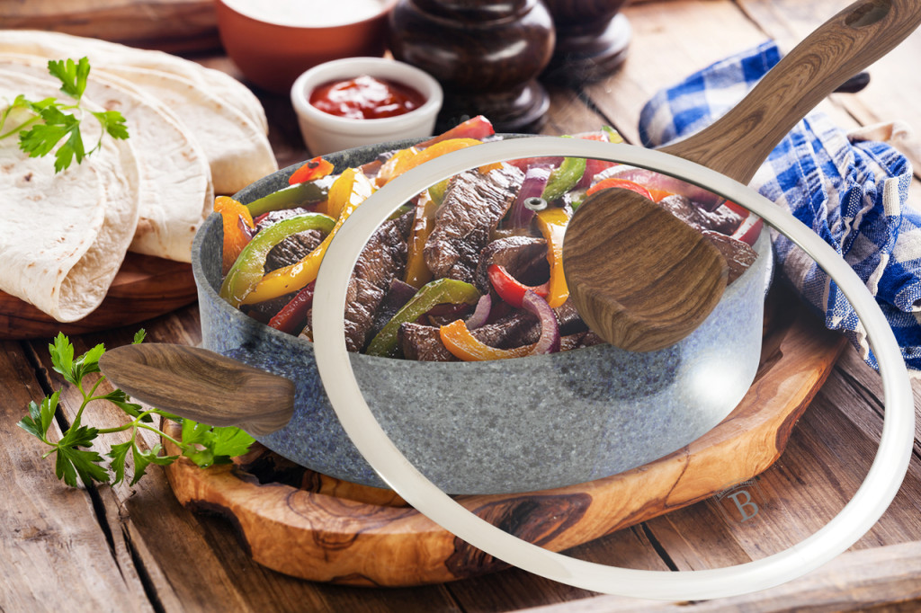 Berlinger Haus Forest Line mély serpenyő kő hatású márvány bevonattal, fa mintázatú nyéllel, fedővel