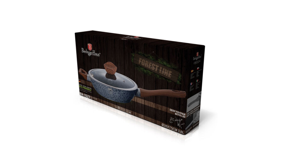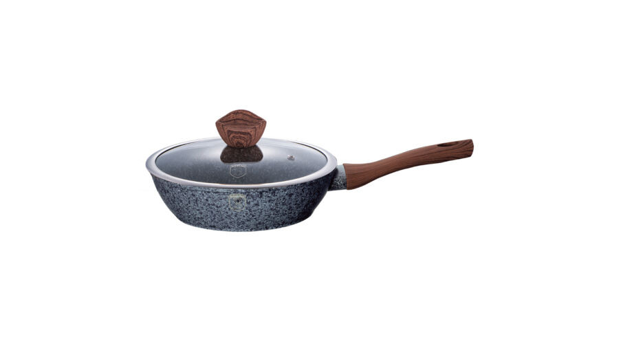 Berlinger Haus Forest Line mély serpenyő kő hatású márvány bevonattal, fa mintázatú nyéllel, fedővel
