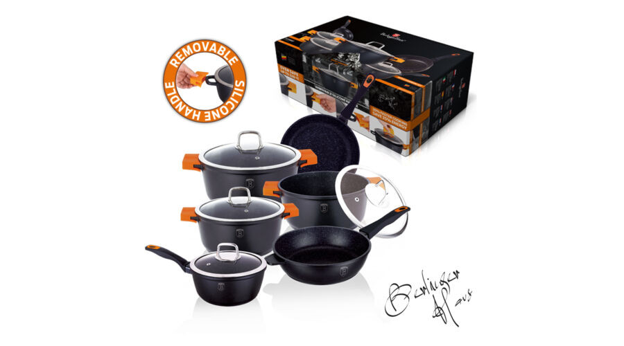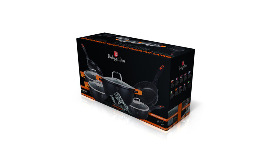 A Berlinger Haus Granit Diamond Line öntött alumíniumból készült edények három réteg márványbevonata és a turbó indukciós talp lehetővé teszi, hogy ételei energiatakarékosan és gyorsabban elkészüljenek.